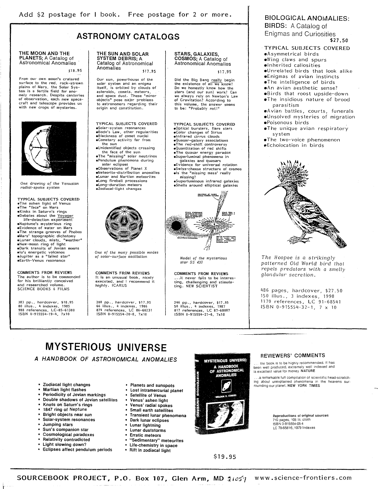 Also, please note that these are only a few of the many excellent reference books authored by Mr. Corliss that are available for sale. To see his many other books, please go to the Sourcebook Project website at: http://www.science-frontiers.com/sourcebk.htm